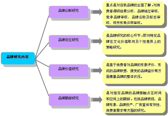 品牌是一種名稱、屬于、標記或他們的組合運用,借以辨認某一銷售者或其產品/服務,并使之同競爭對手的產品和服務區分開來。品牌研究是采用科學的市場指標評價和價值觀評價方法,洞察消費者對品牌的全面體驗、感受與評價,包括對產品功能、使用環境、使用者、制造商與經銷商特點等等方面。